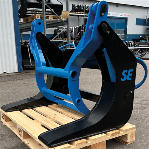 Simplify timber handling with our robust SMS lumber grip from SE Equipment. This machine attachment is specially designed to handle bushes, firewood, and logs easily and safely. With its powerful construction and double hydraulic cylinders, the lumber grip can handle even long logs with a capacity of up to 2500 kg.