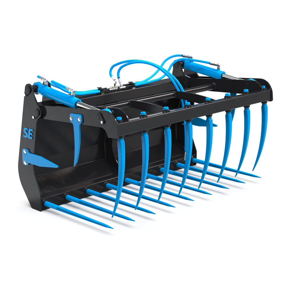 The Silage Grab is especially suitable for handling silage, brushwood, manure, and branches. It is ideal for farms, agricultural use, brush clearing, and other heavy lifting tasks requiring a secure and powerful grip.