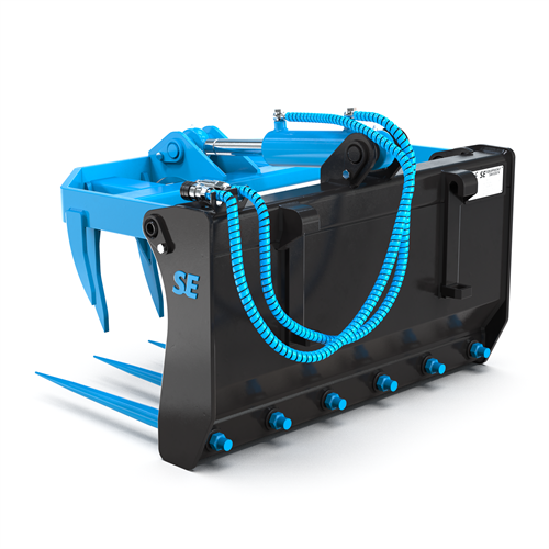 SE Equipments krokodilgrep är det perfekta redskapet för kompaktlastare som används i tuffa och materialintensiva arbetsmiljöer. Med sin smarta konstruktion, kraftfulla prestanda och precisionstillverkade komponenter erbjuder den en effektiv och hållbar lösning för greppkrävande uppgifter som rishantering och ensilageflytt.